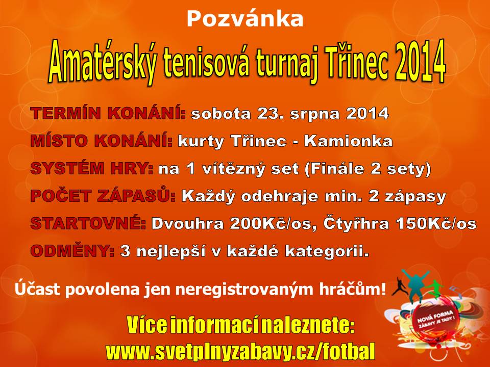 V sobotu 23. srpna 2014 se uskuteční 2. ročník Amatérského turnaje v tenise na antukových kurtech Třinec - Kamionka.