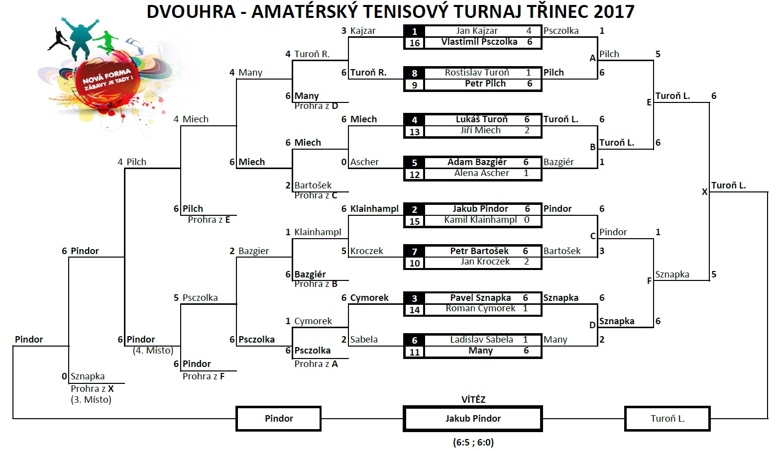 Na turnaji jsme přivítali také čtyři nováčky Vlastimila Psczolku, Adama Bazgiera, Jakuba Pindora a Kamila Klainhampla. Přijel také finalista minulého ročníku a tenisový maratonec Pavel Sznapka z Karviné.